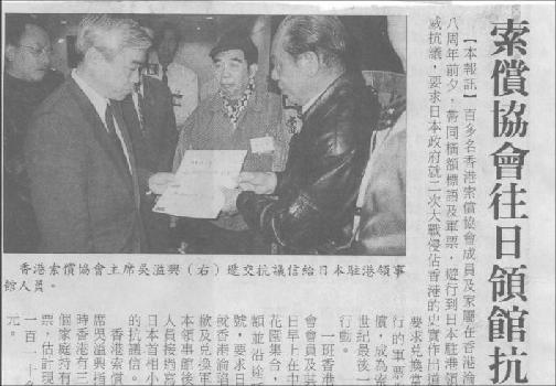 For the past thirty odds years, our association has continuously been requesting the Japanese Government to exchange back the Military Yens. On 13 August 1993, the case of the 'Military Yens' was put on court in Japan. After 28 times of court trial, on 17-06-99, the Japanese Court gave the verdict that she admitted there was tremendous harm done to the Hong Kong citizens during the war, however, since there was no compensation law in Japan, the court turned down our claims for the compensation and exchange of 'Military Yens''.